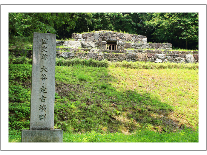 3段の墳丘と前面に2段の基壇をもつ大谷1号墳は、全国的にもあまり例のない史跡。