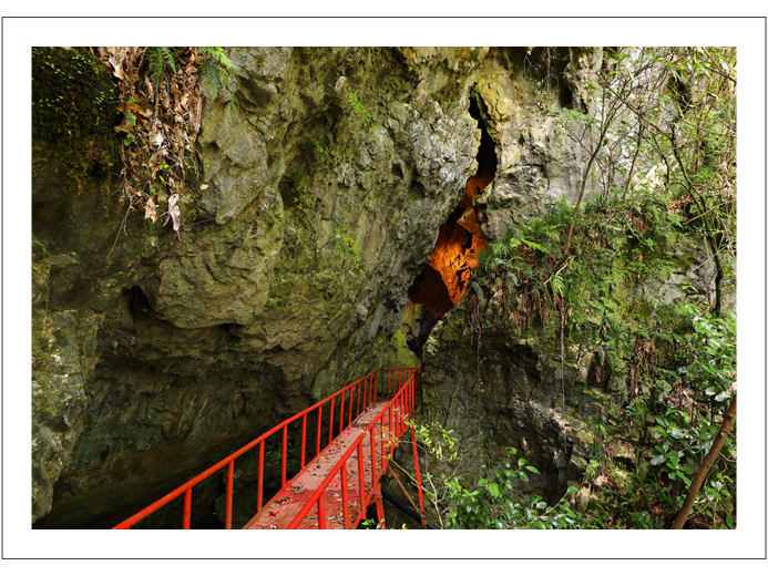 鍾乳石の下を大量の水が流れ、多くの滝を形成している特異な鍾乳洞。岡山県の指定天然記念物。