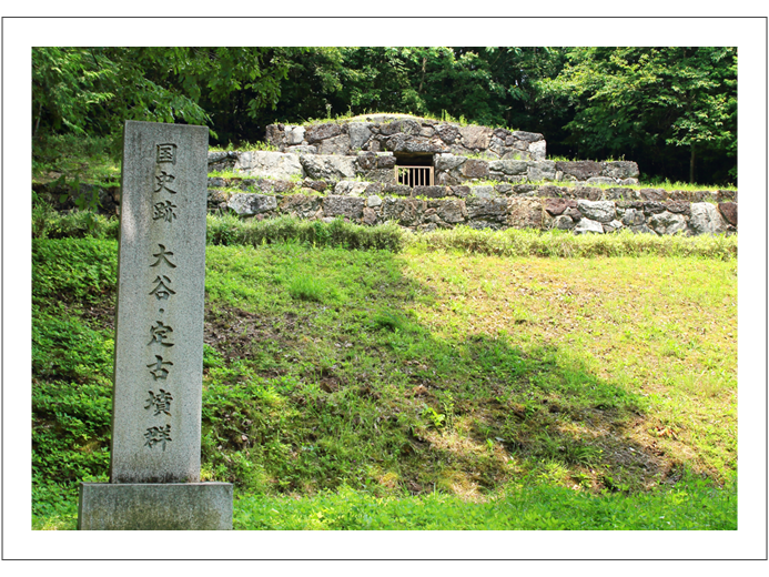 3段の墳丘と前面に2段の基壇をもつ大谷1号墳は、全国的にもあまり例のない史跡。